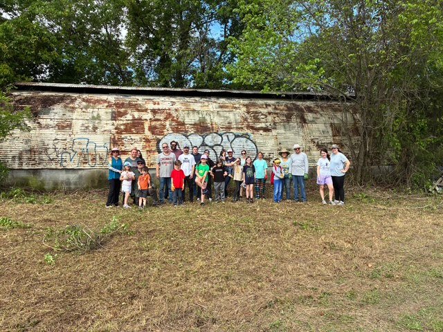 On April 4, we held our second volunteer workday. About 30 volunteers came out, including girl scouts from Troop 50208. The kids painted tires to be turned into planters, picked wisteria, and helped clear an area that has now been deemed the “kid’s corner”. The adults cleared brush surrounding the future greenhouse, leveled weeds growing between cracks in the concrete, and untangled vines to better reveal the beautiful sycamore tree.